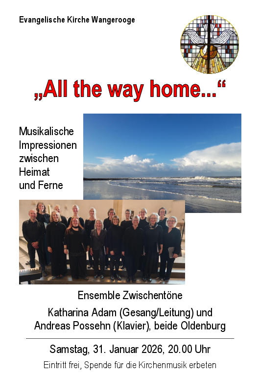 Kirchen-Musiker*innen haben ganzjährig die Gelegenheit, für ein musikalisches Wochenende auf die Insel zu kommen und sich zum Beispiel am Freitag mit einer Abendmusik und am Sonntag mit der Gottesdienstgestaltung einzubringen - gegen mietfreie Unterkunft und eine Portion Erholung an dem verlängerten Insel-Wochenende. So entsteht mit dem Repertoire, das sie von zuhause mitbringen, aus vielfältigen musikalischen Akzenten ein breites Angebot über das ganze Jahr hin.